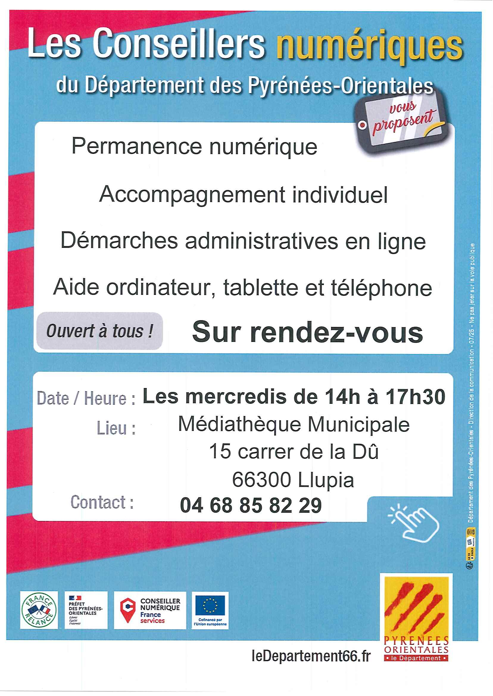 Les conseillers numériques vous accueillent tous les mercredis de 14h à 17h30 à la médiathèque pour une assistance personnalisée sur vos démarches administratives ou pour mieux maîtriser vos outils numériques !