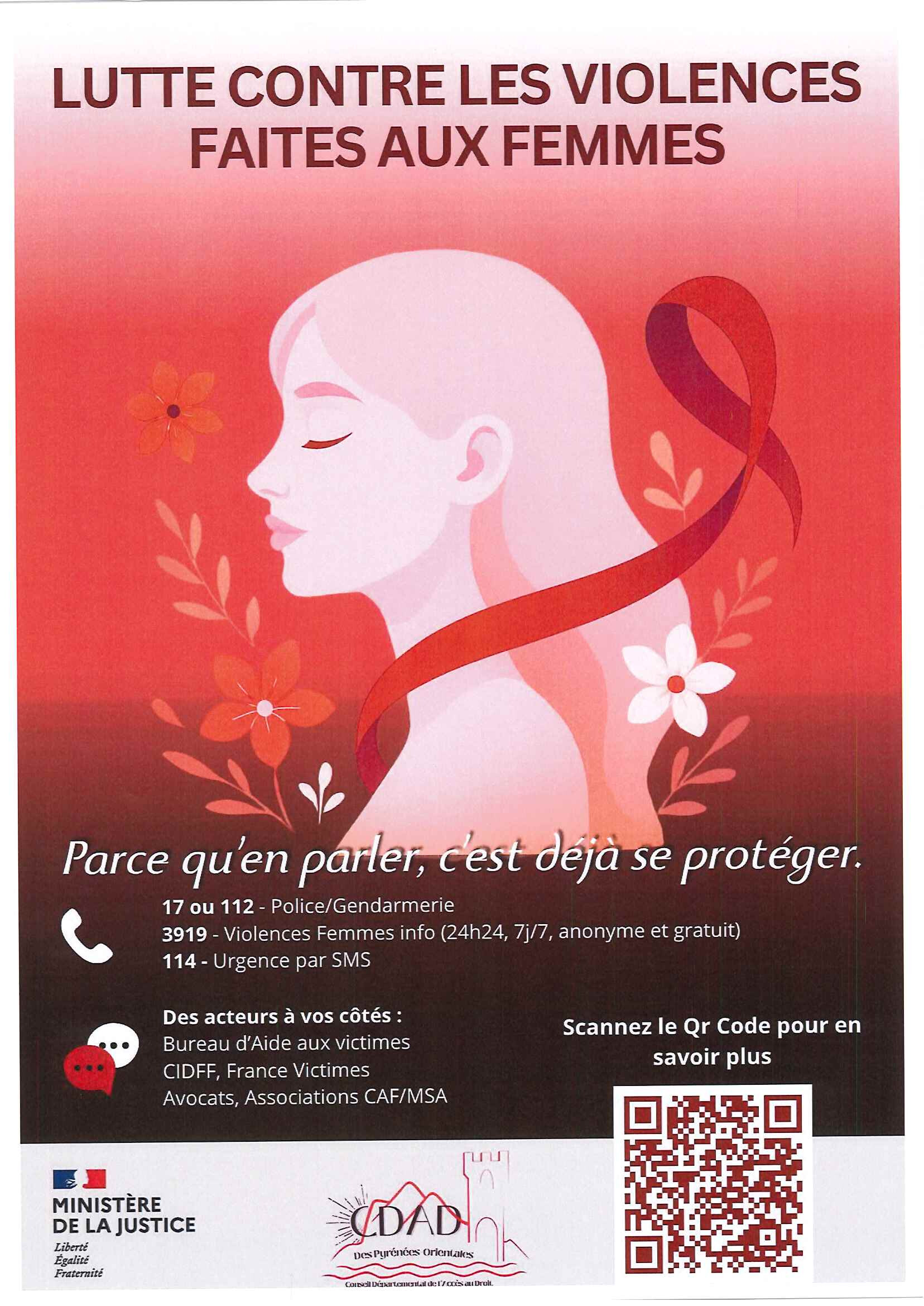 Contactez le 17 ou le 112 (police/gendarmerie) ou le 3919 24h/24 et 7j/7, gratuitement et anonymement ou en cas d'urgence, un simple SMS au 114.