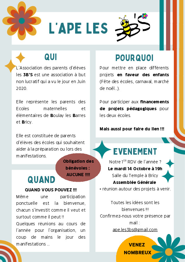 Parents d’élèves de Boulay-les-Barres et Bricy, l’Association des Parents d’Élèves a besoin de vous !