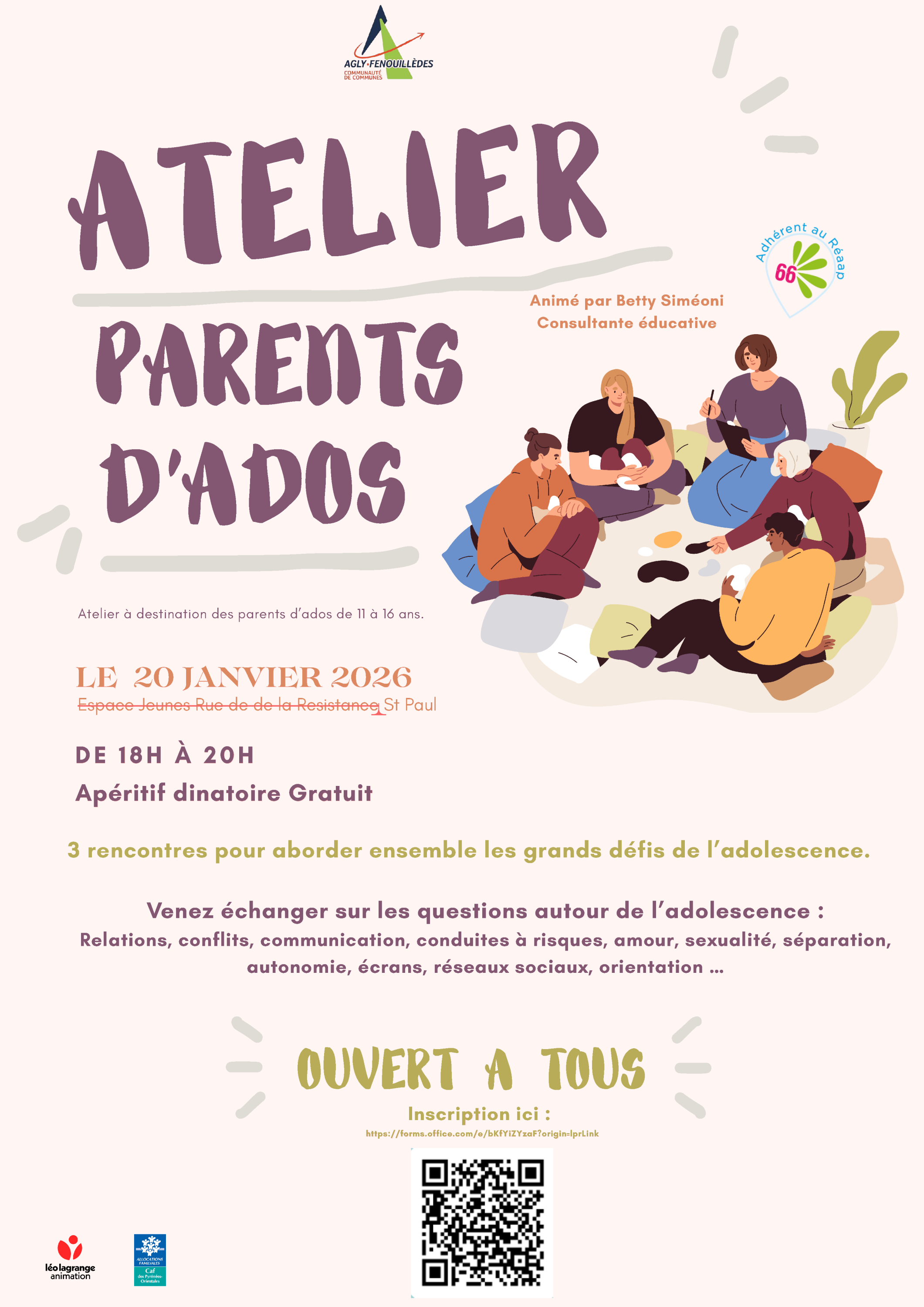 Atelier à destination des parents d’ados de 11 à 16 ans.