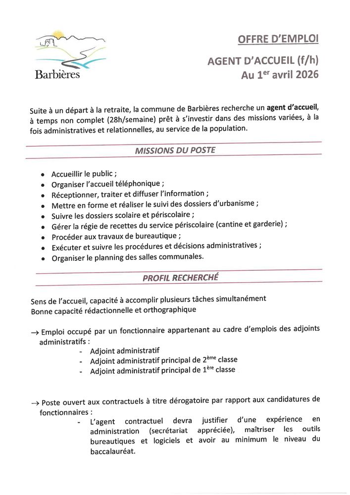 Ce samedi 14 février la mairie fermera exceptionnellement à 11h30.