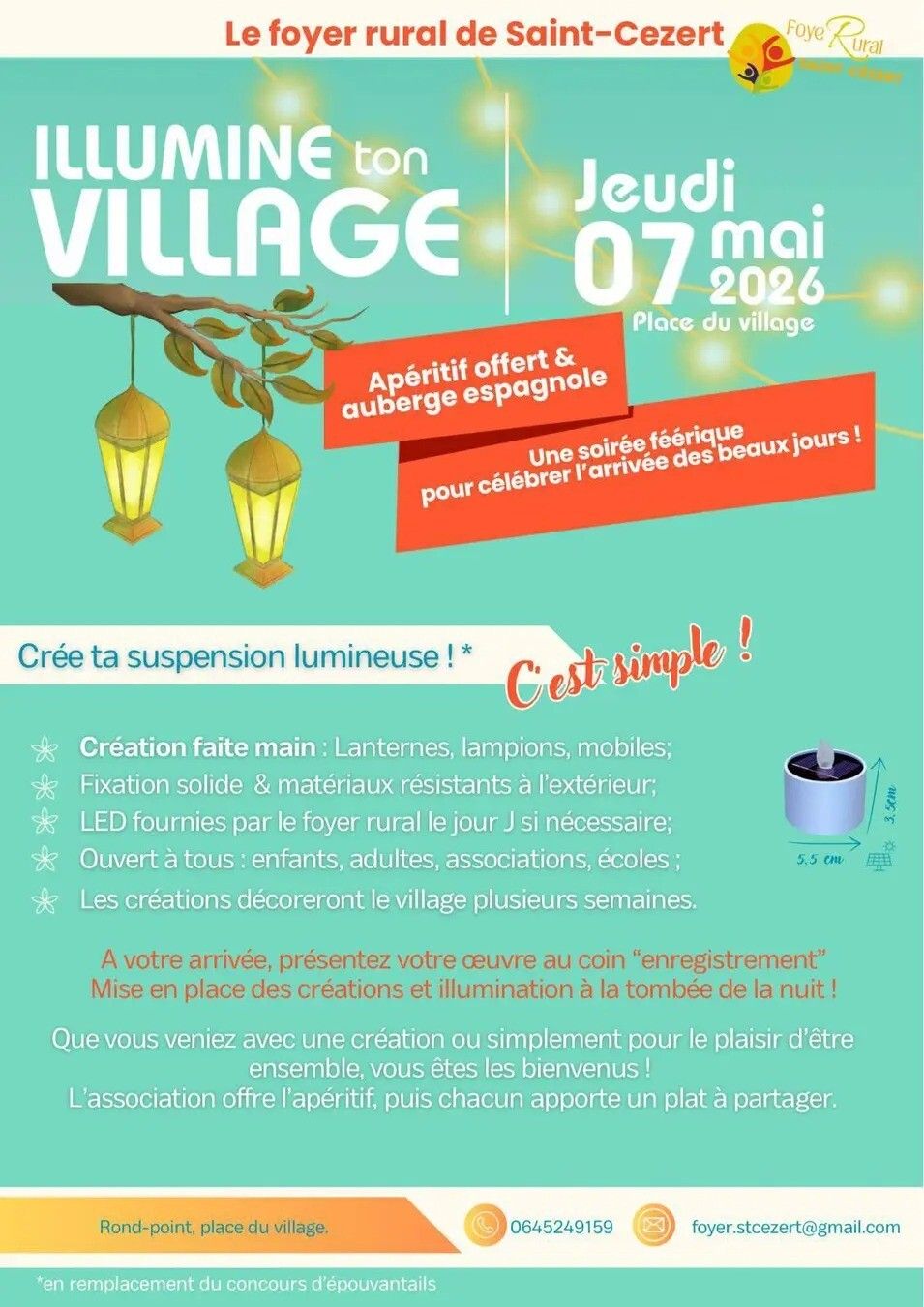 Bonne nouvelle : une LED lumineuse peut être fournie par le Foyer Rural pour celles et ceux qui souhaitent.