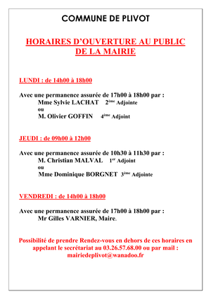 A compter du lundi 2 mars 2026, la mairie sera ouverte :