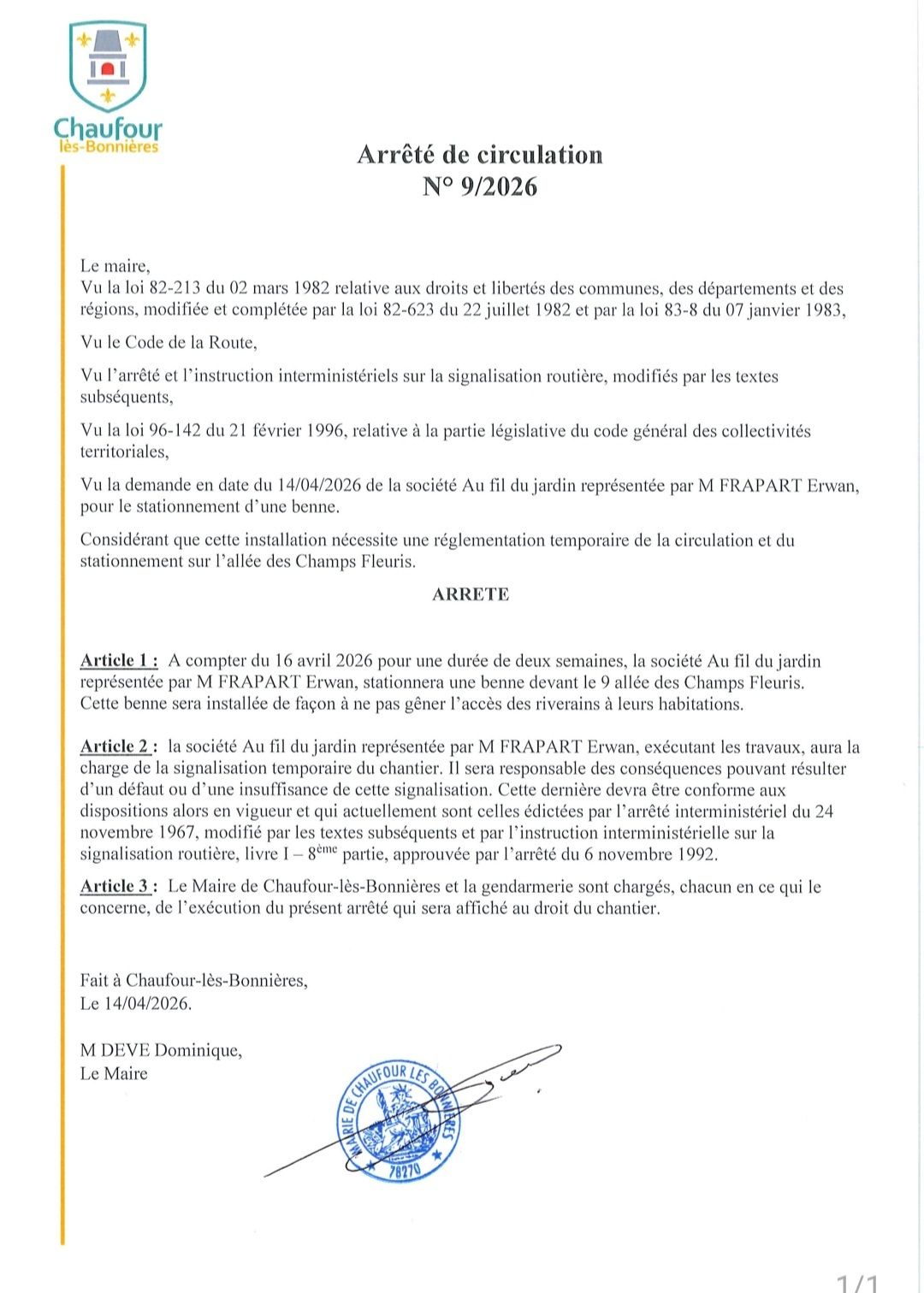 Installation temporaire d'une benne à déchets