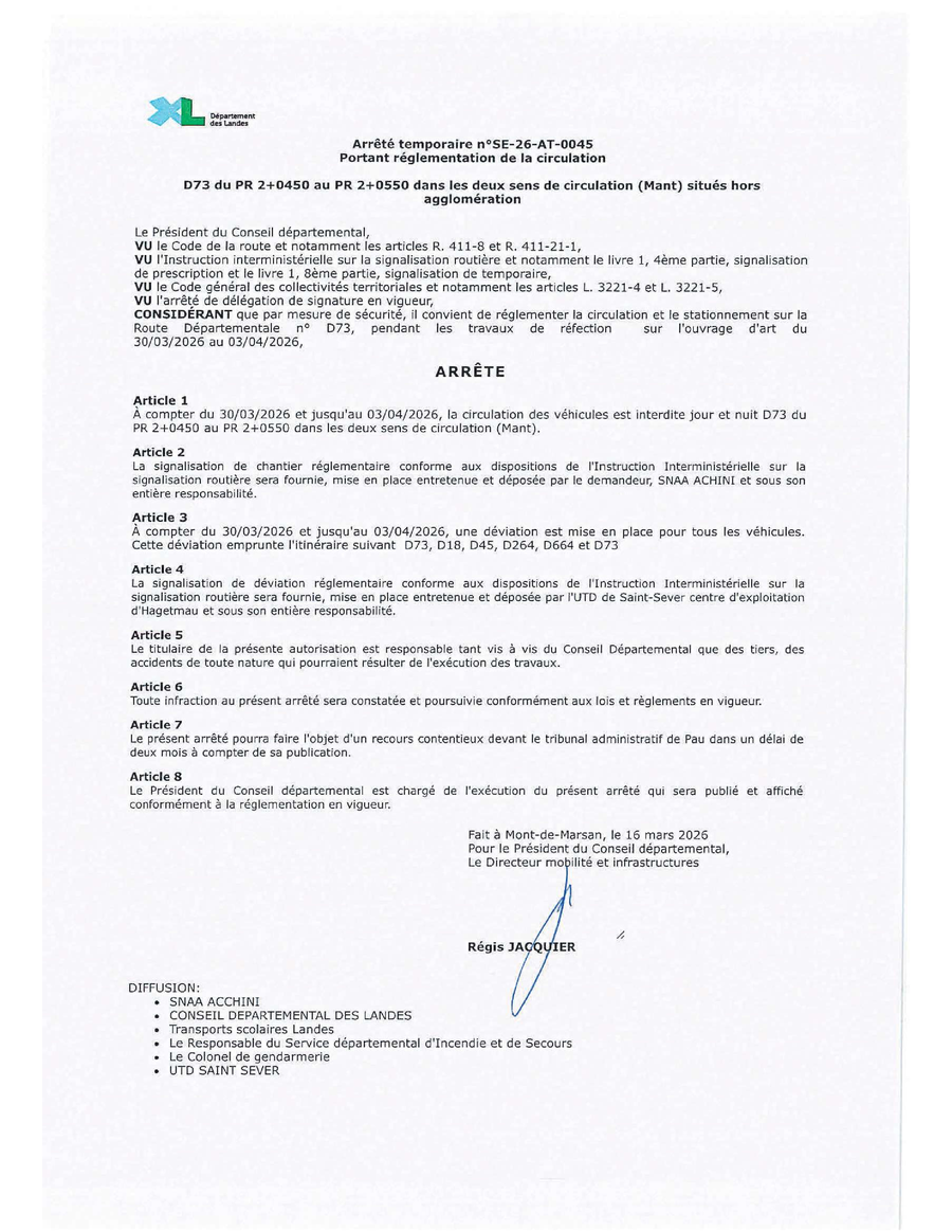 Des travaux sur la route de Malaussanne (RD73) à Mant obligent à mettre en place une déviation sur les communes de Monget, Montagut & Malaussanne