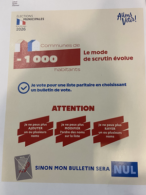 L'inscription sur les listes électorales est possible jusqu'au 4 février 2026 en ligne et jusqu'au 6 février 2026 en Mairie.