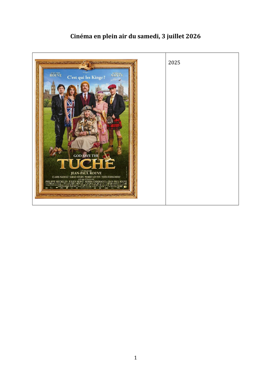 Depuis plusieurs années maintenant, la municipalité organise chaque été une séance de cinéma en plein air.