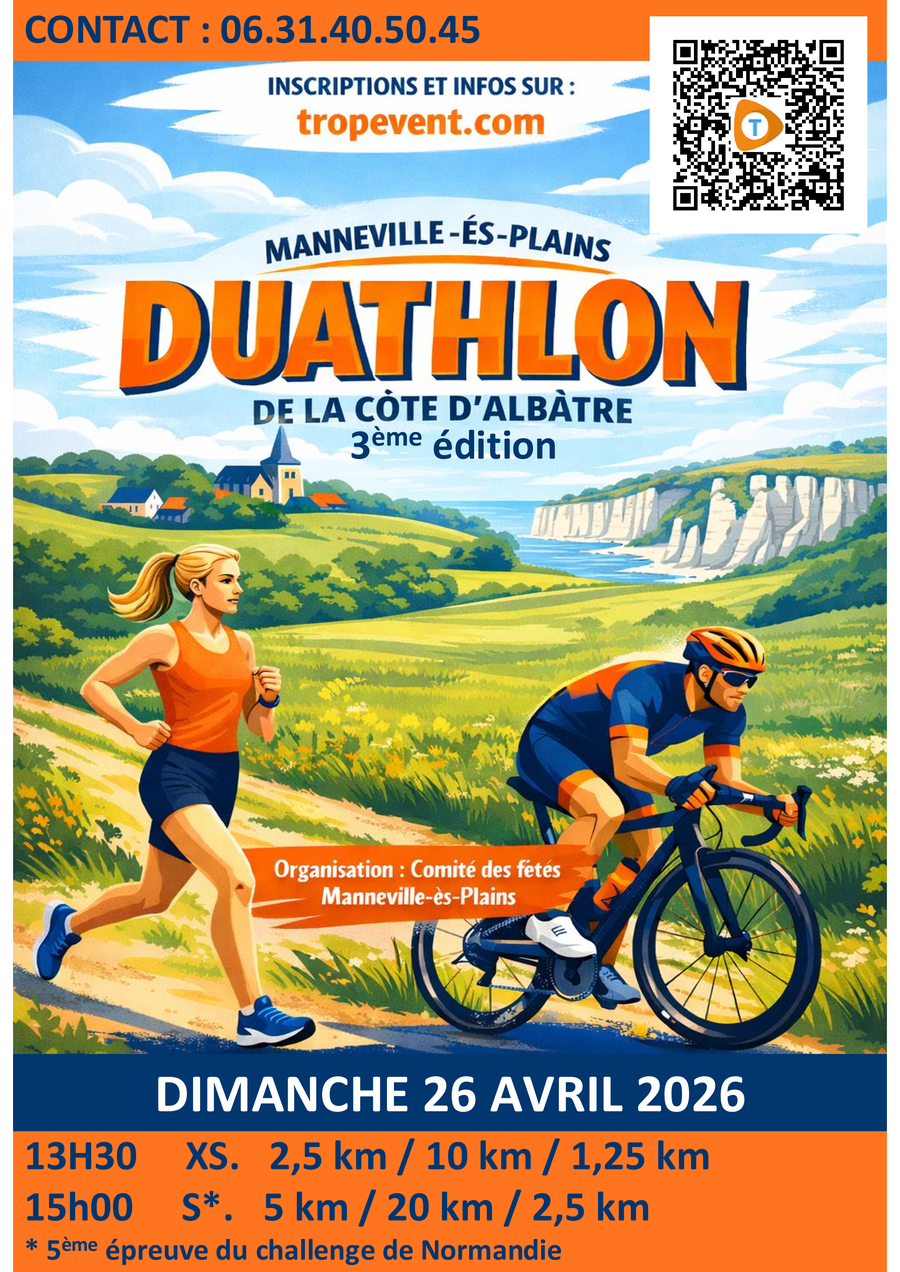 Dans moins de 3 semaines aura lieu la troisième édition de notre duathlon de la côte d’albâtre. Organisé par le comité des fêtes et avec l’aide de nombreux partenaires, nous attendons les participants sur des parcours pédestres et cyclistes sur notre commune et les communes voisines.