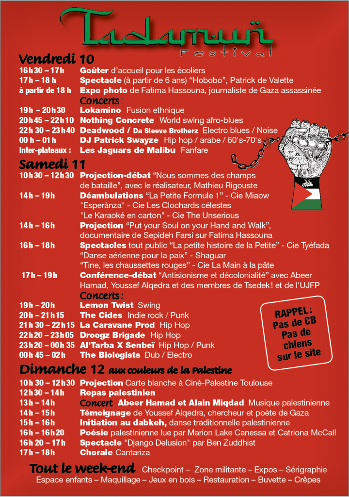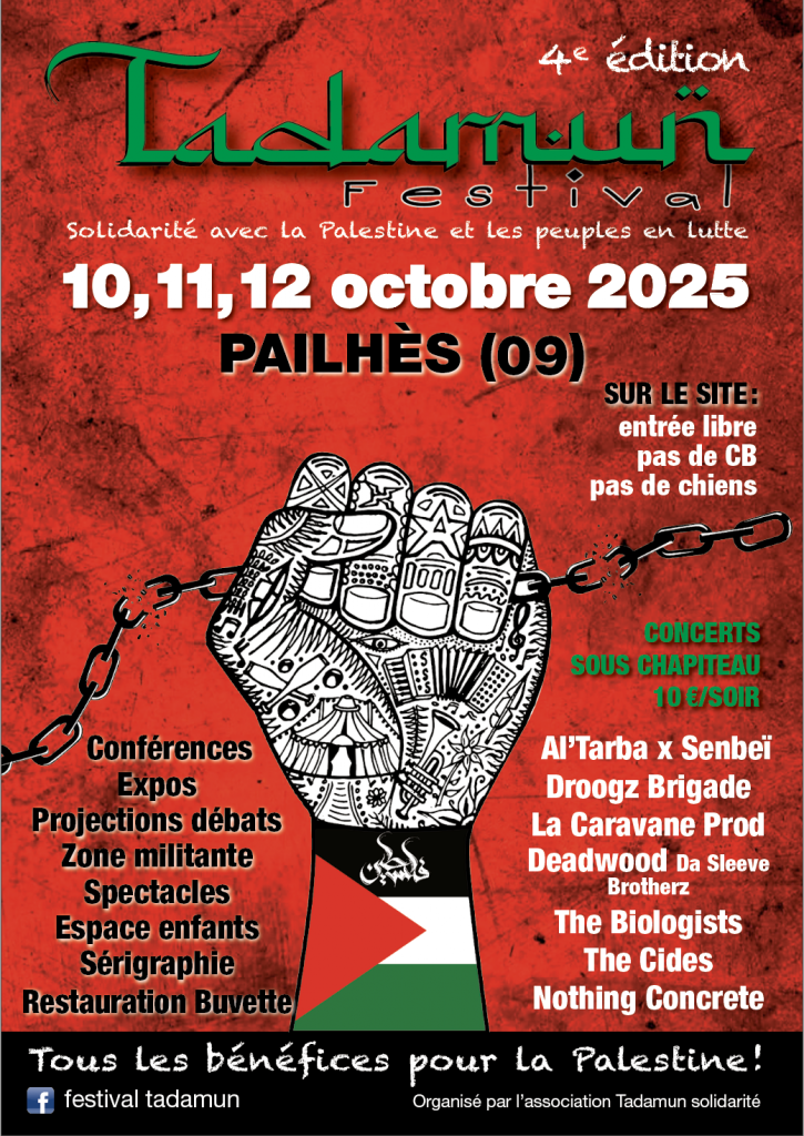 L'association Tadamun solidarité nous propose un temps de rencontres en solidarité avec la Palestine
