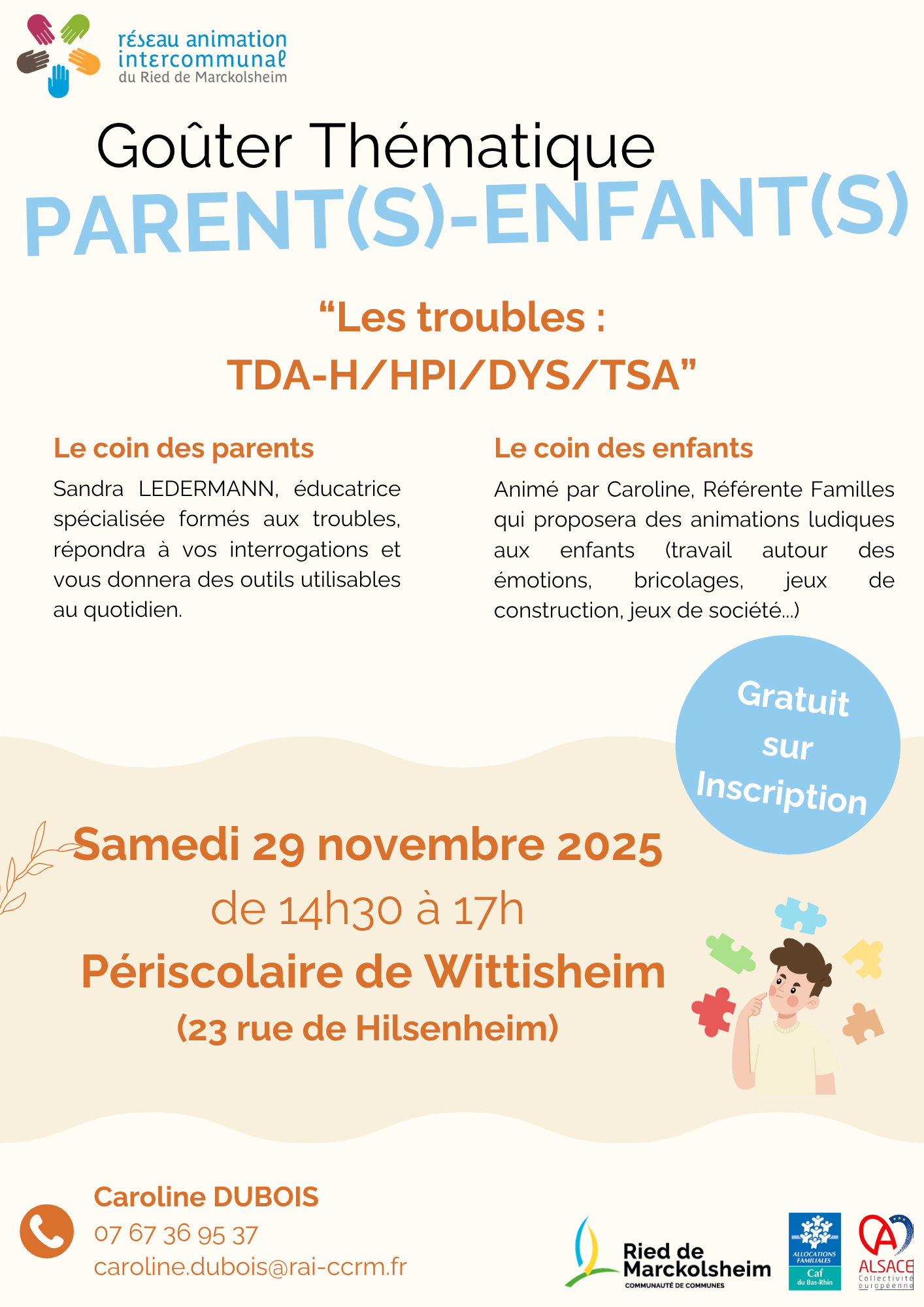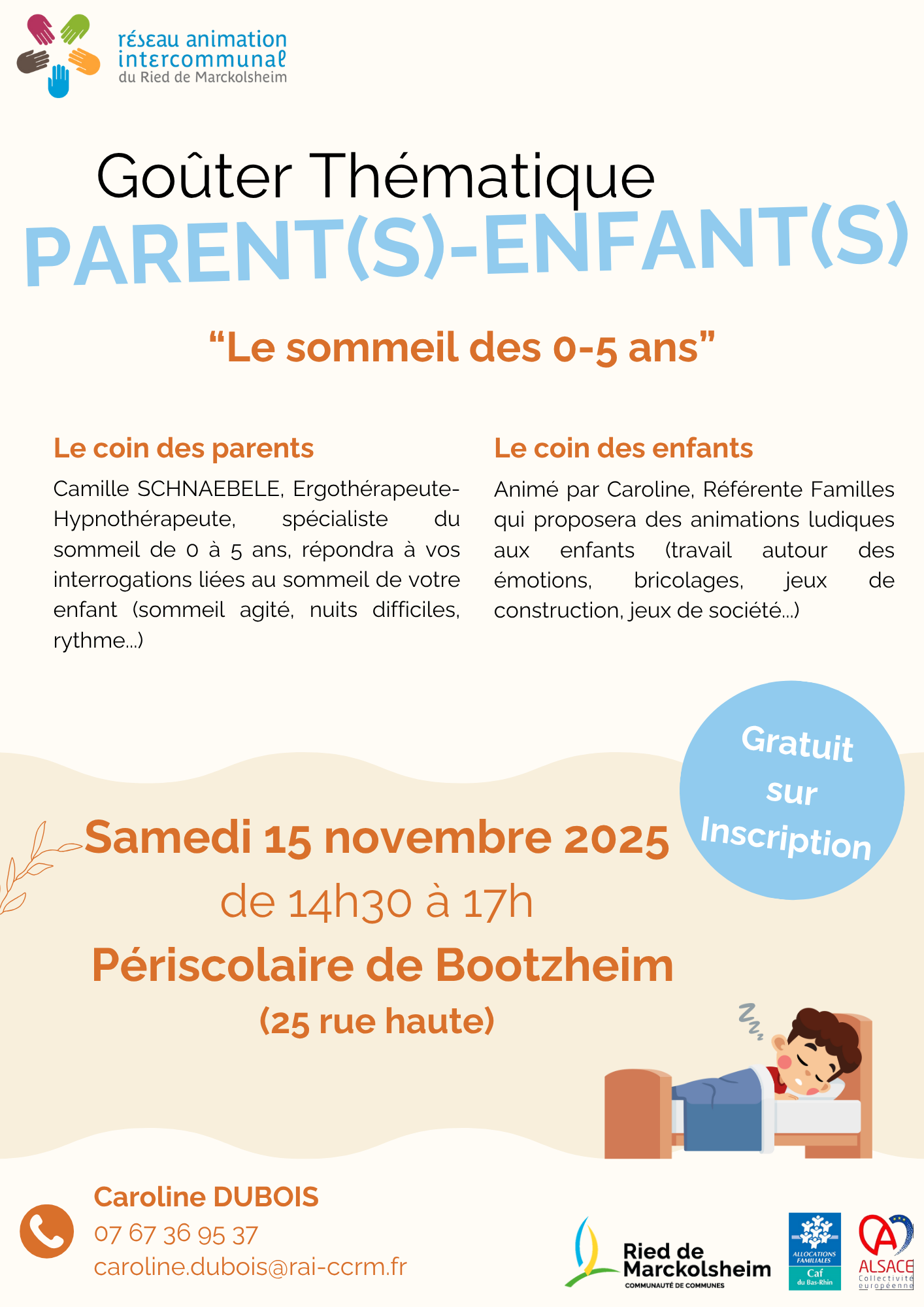 Les réservations se font par mail à l’adresse alsh.ccrm@agf67.fr entre le 22/09 et le 08/10/25. Clôture des inscriptions le mercredi 8 octobre à 18h.
