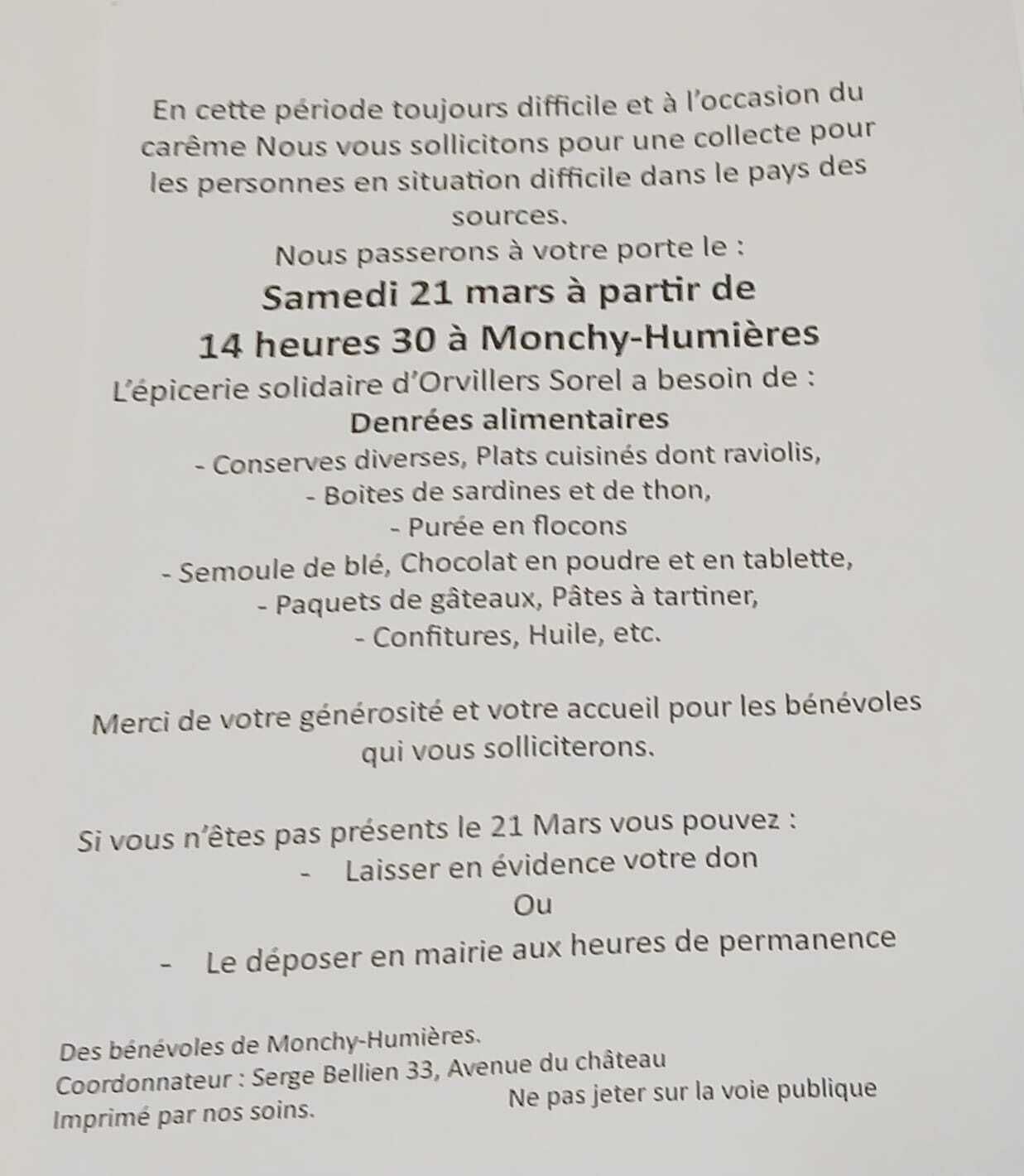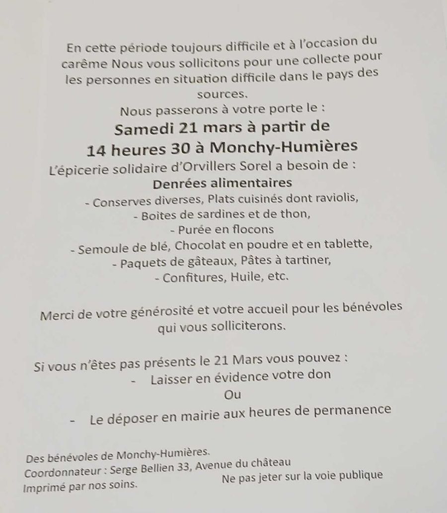 La municipalité vous informe de cette collecte organisée sur le village demain, samedi 21 mars.