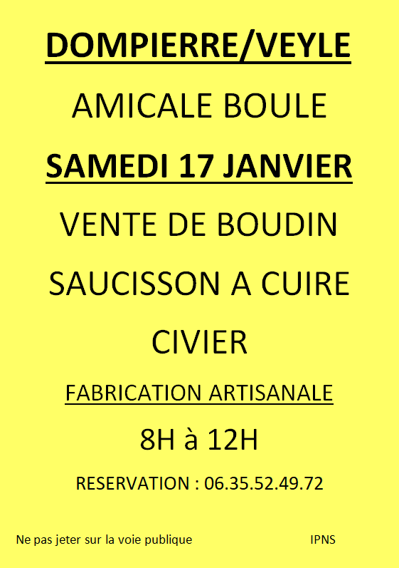 Pour récupération le 17 janvier au matin ...