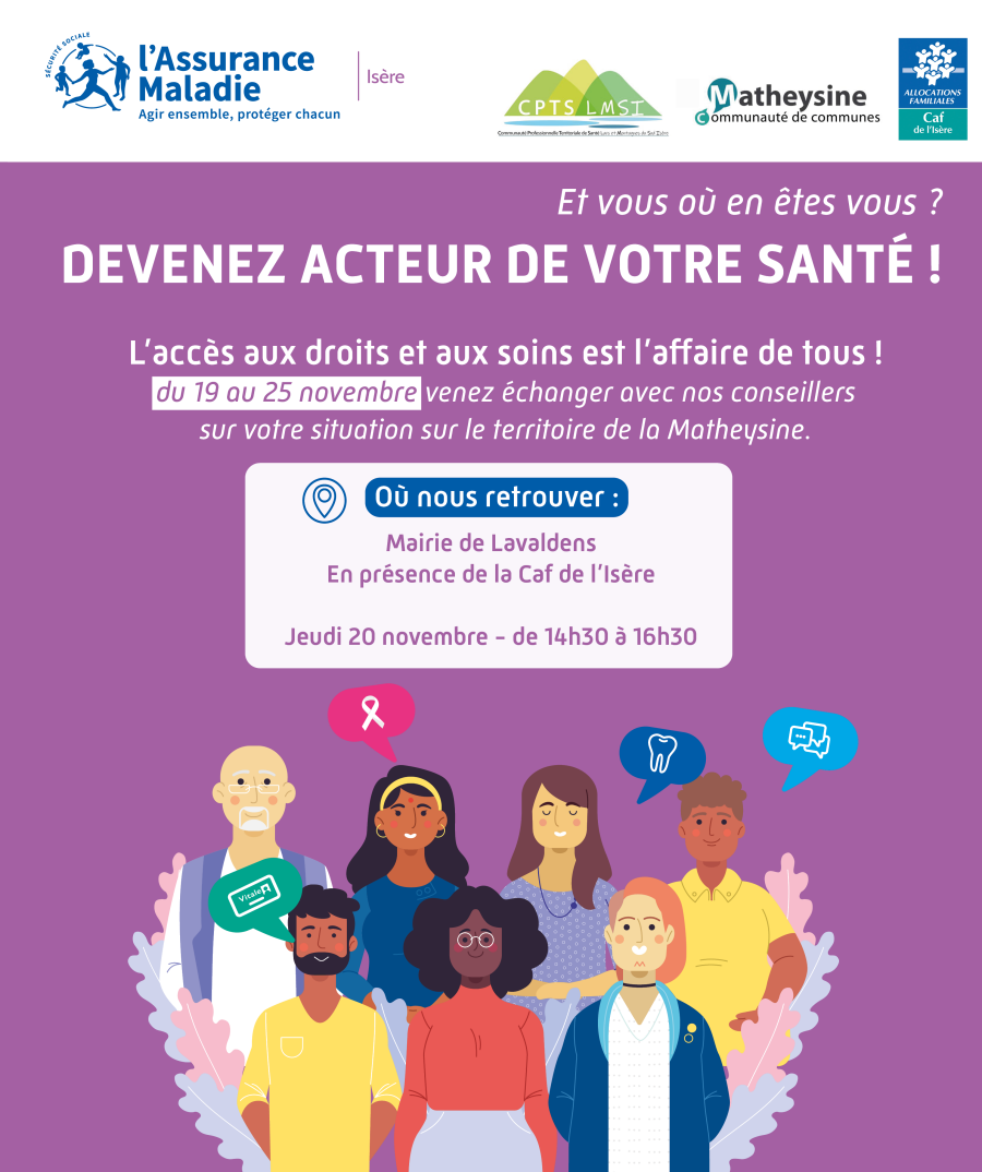 Soucieuse de faciliter votre accĂšs aux soins, la CPAM de lâIsĂšre organise prĂšs de chez vous, des temps dâĂ©changes personnalisĂ©s.