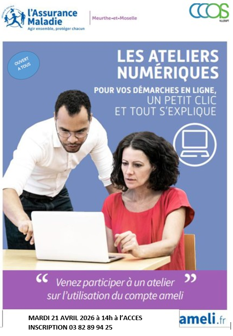 Le CCAS de Villerupt et la CPAM54 vous propose un atelier pour apprendre à utiliser votre compte AMELI : démarches, navigation, téléchargement d’attestations…