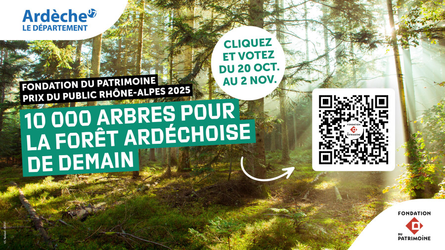 Le projet ardéchois « 10 000 arbres pour la forêt ardéchoise de demain » a été sélectionné par la Fondation du patrimoine comme candidat pour l’Ardèche, dans le cadre du Prix du public Rhône-Alpes 2025.