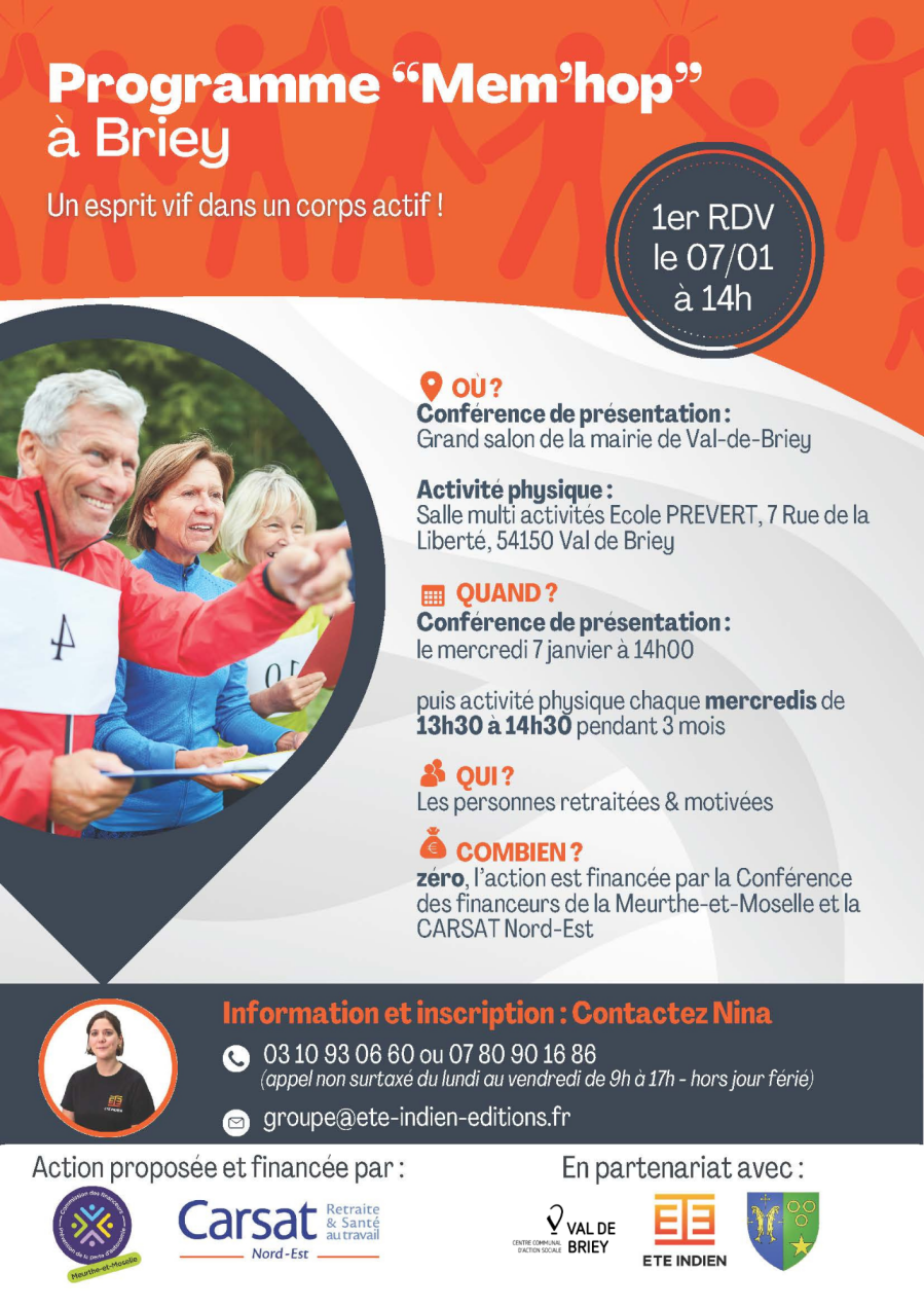 Le CCAS de la ville, la Conférence des financeurs de Meurthe-et-Moselle et la CARSAT Nord-Est vous proposent des ateliers GRATUITS !