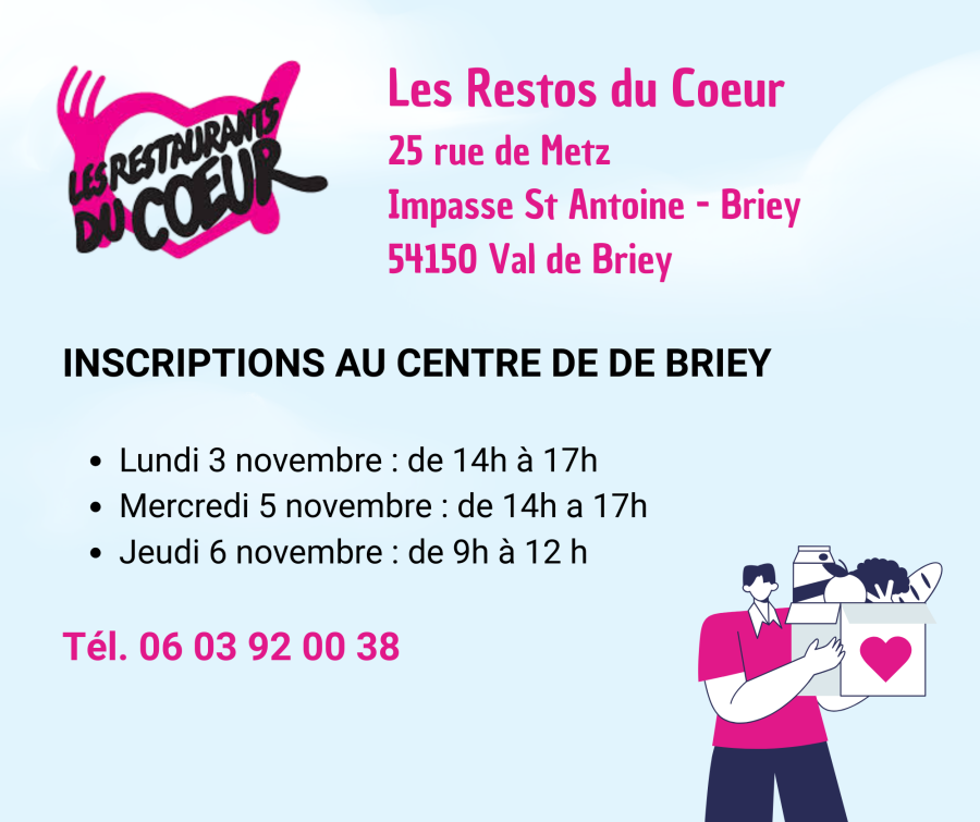 📝 Ouverture des inscriptions aux Restos du Coeur de Briey 🩷,
