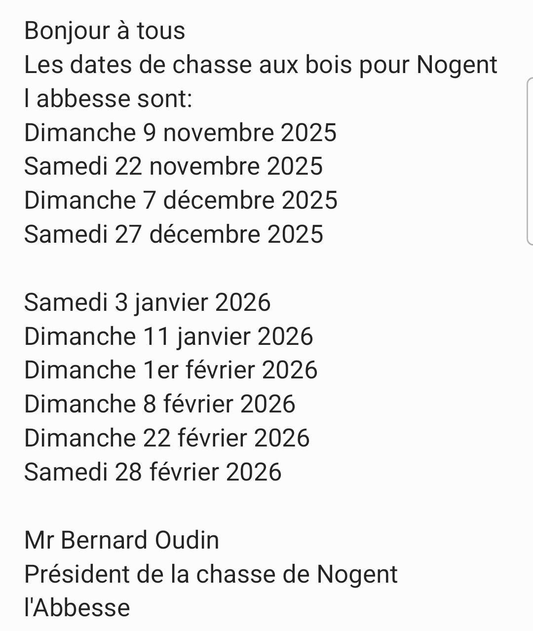 Nous sommes heureux de vous inviter à célébrer notre Saint Patron le Samedi 24 Janvier 2026 à Nogent l'Abbesse. Nous vous attendons nombreux