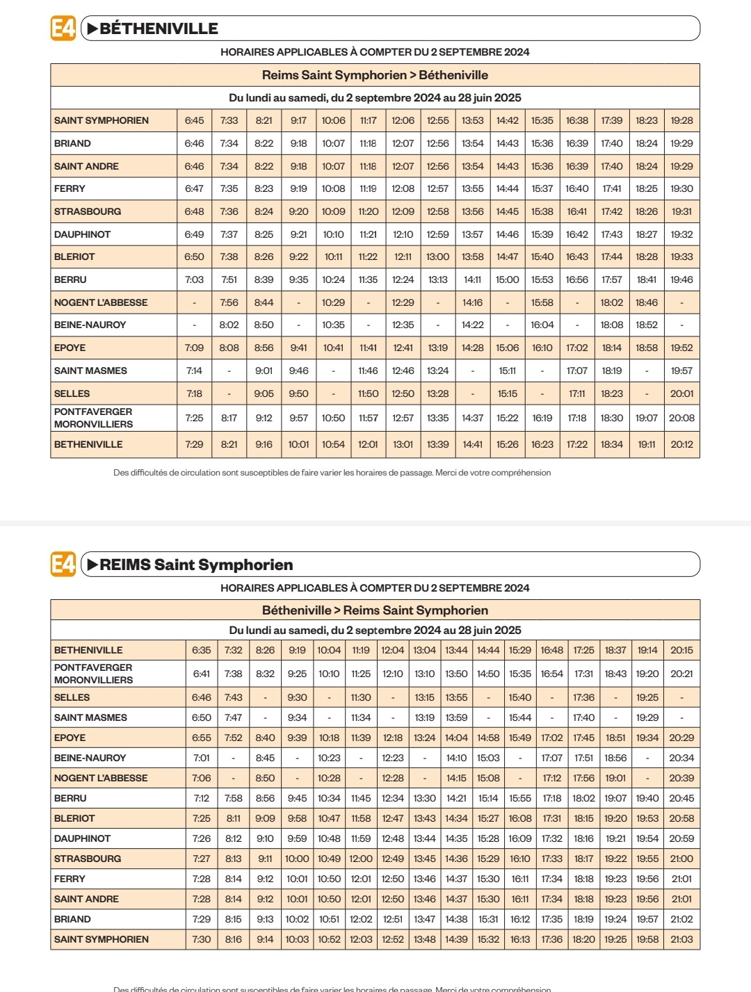 Départs et arrivées à la Coopérative de Nogent-Cernay , rue des Etrelles, chaque jour sauf dimanches et jours fériés.