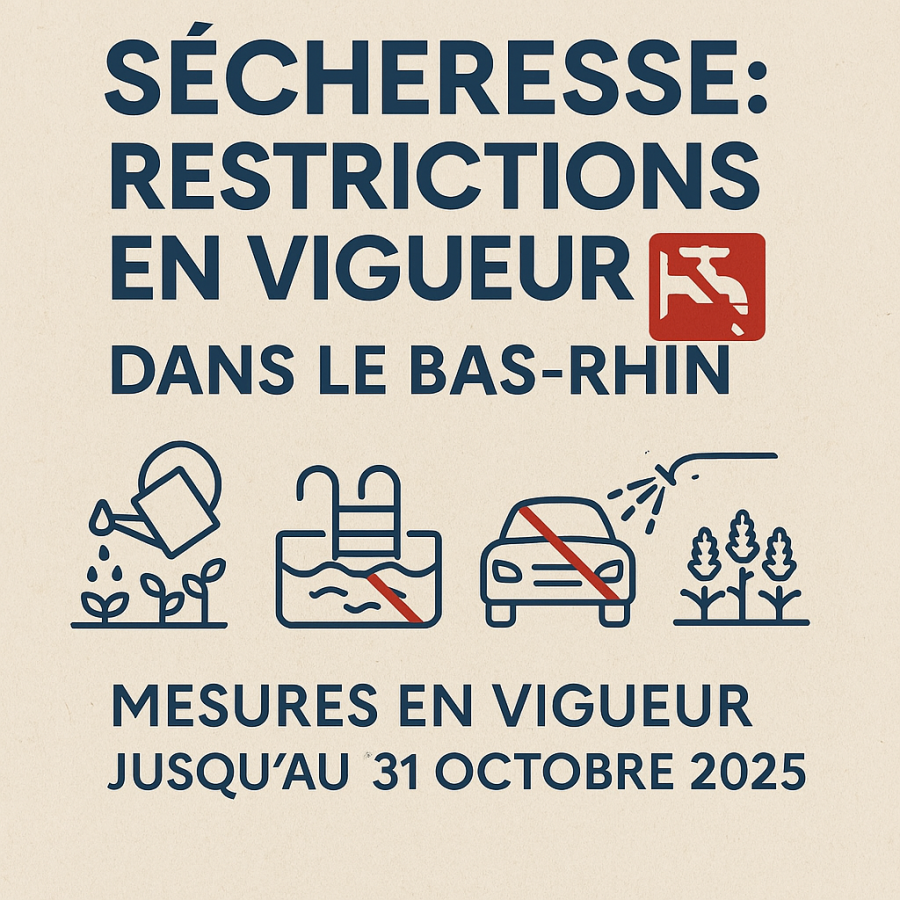 Face à la baisse des débits et aux prévisions météo, la préfecture du Bas-Rhin renforce temporairement les restrictions d'usage de l'eau.