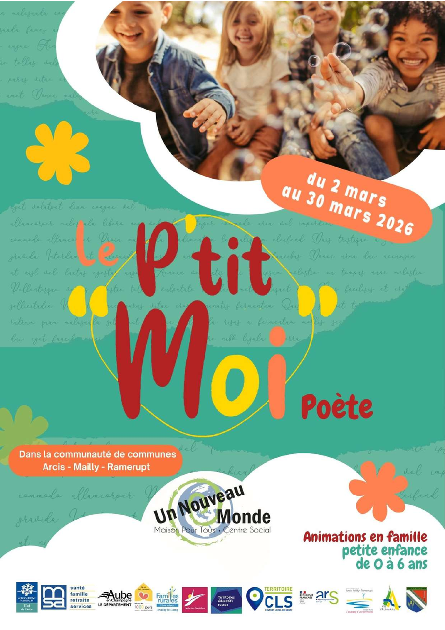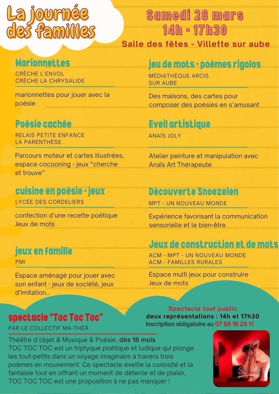Un mois d’animations pour les familles et les professionnels avec des enfants de la naissance à 6 ans, avec le 28 mars, un après-midi multi-ateliers à la salle des fêtes de Villette-sur-Aube.