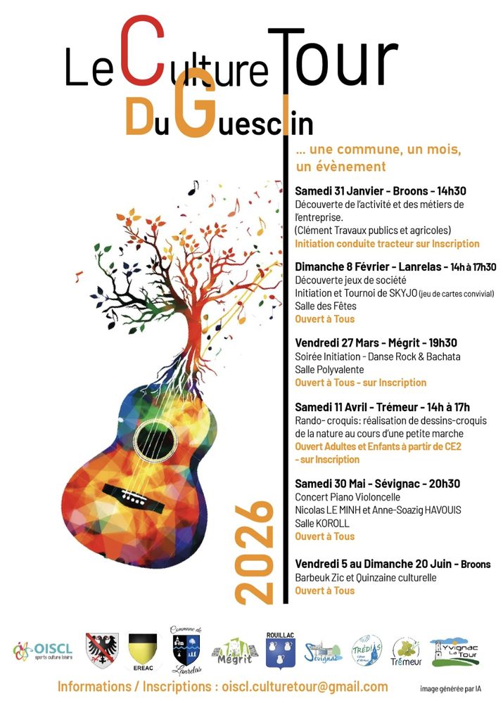 Tout au long de l’année 2026, "le Culture Tour Du Guesclin" sillonne les communes du territoire pour faire vivre la culture au plus près de vous ✨