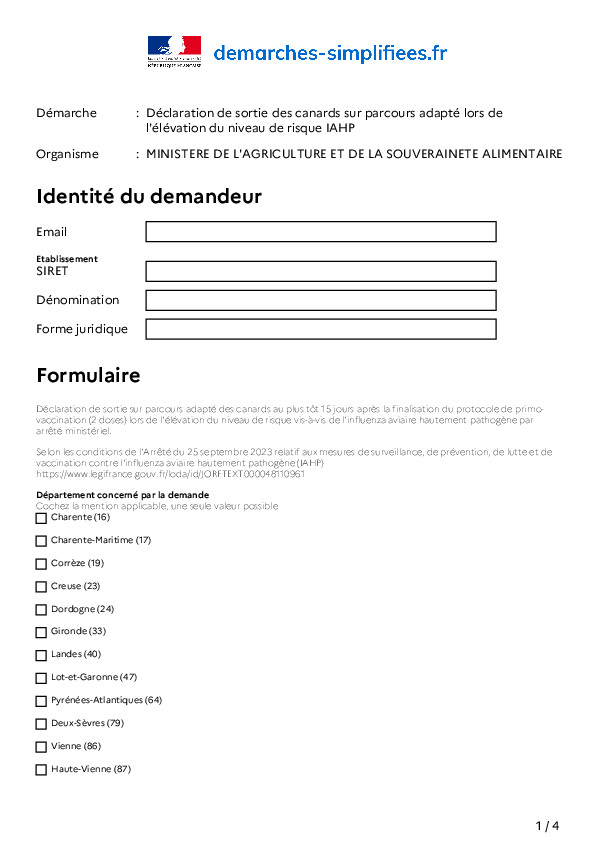 Les déclarations de sortie des canards sur parcours adapté se feront en ligne sur démarches simplifiées avec le lien suivant :
