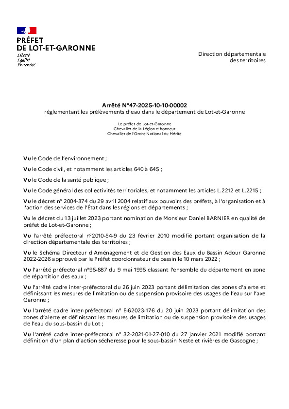 lâarrĂȘtĂ© ministĂ©riel relevant le