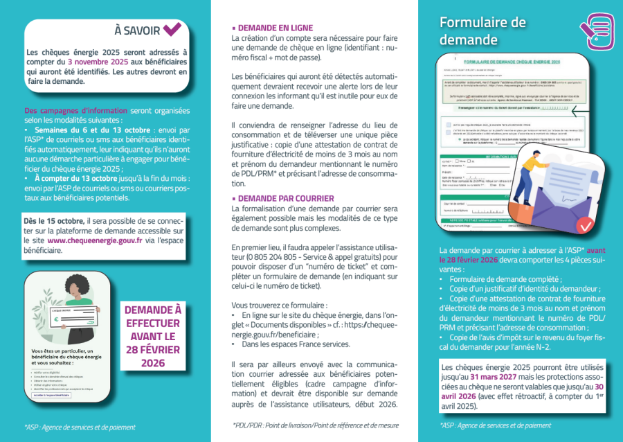 Dans le cadre de la campagne 2025 du chèque énergie, veuillez trouver ci-joint une brochure d’information.