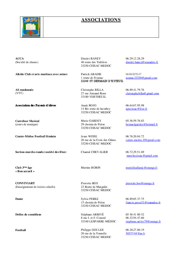 Mairie de Cussac-Fort-Médoc : 11 Place du Général de Gaulle – 05 57 88 85 00