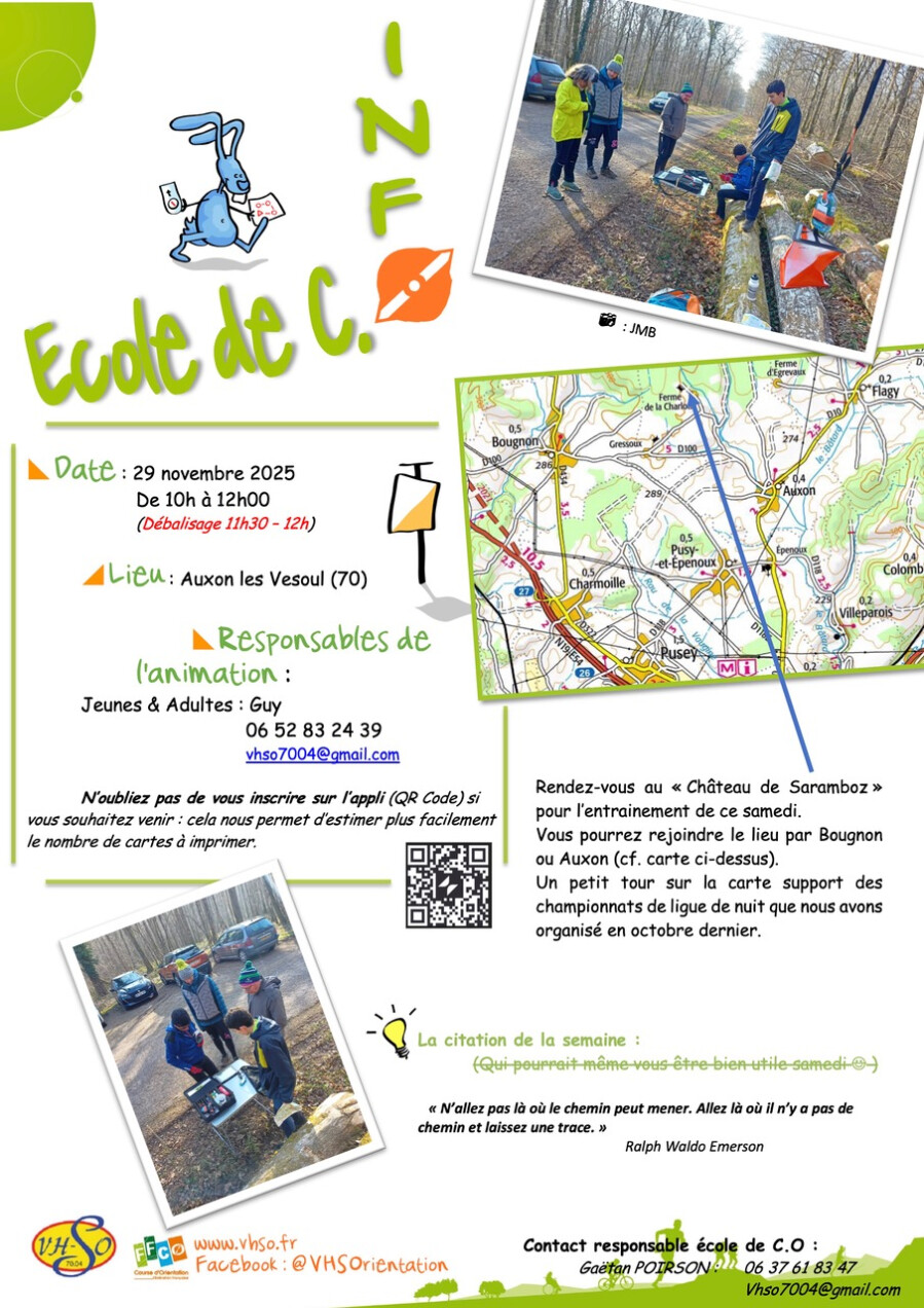 Organise un entraînement ce samedi 29/11/25 sur la commune.