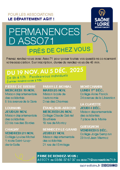 Prenez rendez-vous avec Asso71 pour poser toutes vos questions concernant votre association