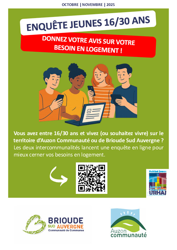 Vous avez entre 16 et 30 ans et vous vivez (ou souhaitez vivre) sur les territoires d’Auzon Communauté ou de Brioude Sud Auvergne ?