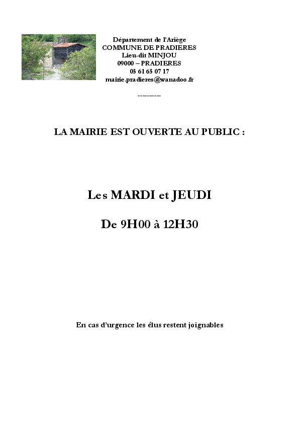 Suite au retour de la secrétaire, les permanences du secrétariat de Mairie reviennent à la normal :