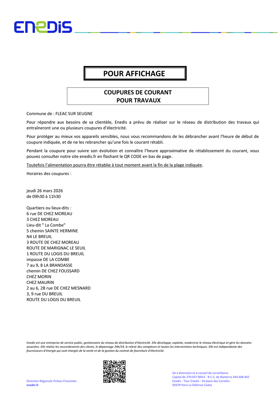 La Mairie de Fléac-sur-Seugne informe ses administrés que les bureaux seront fermés: