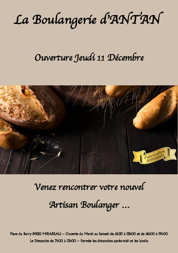 Votre nouveau boulanger s’apprête à nous rejoindre très bientôt.