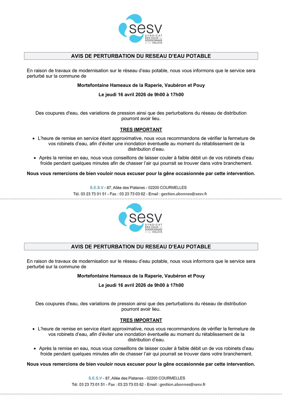 En raison de travaux sur le réseau d'eau potable de la commmune,