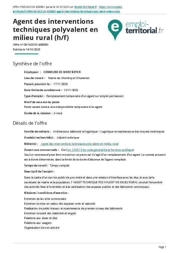 Consultation : du lundi au vendredi à la Maison de santé de Montmoreau.
