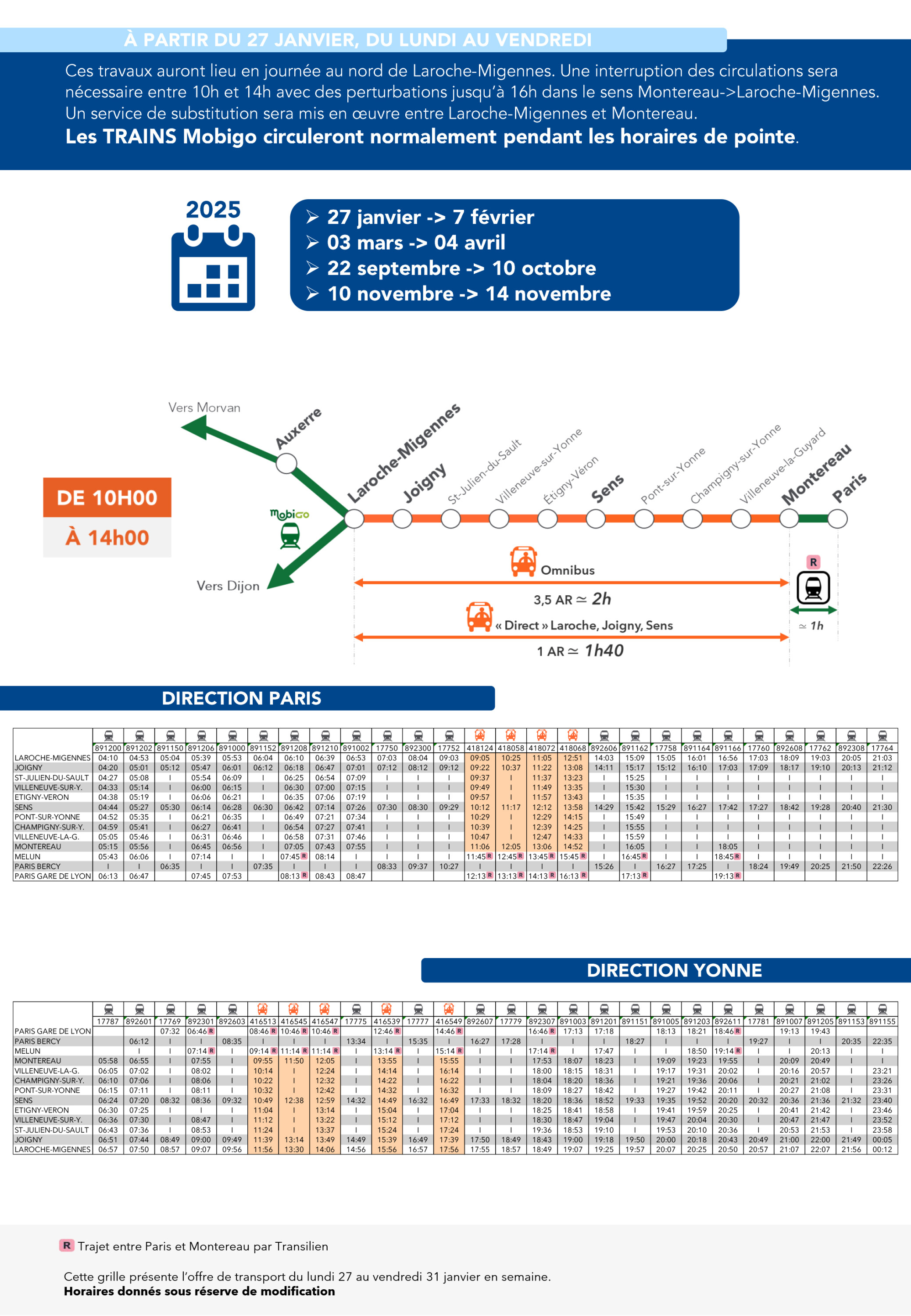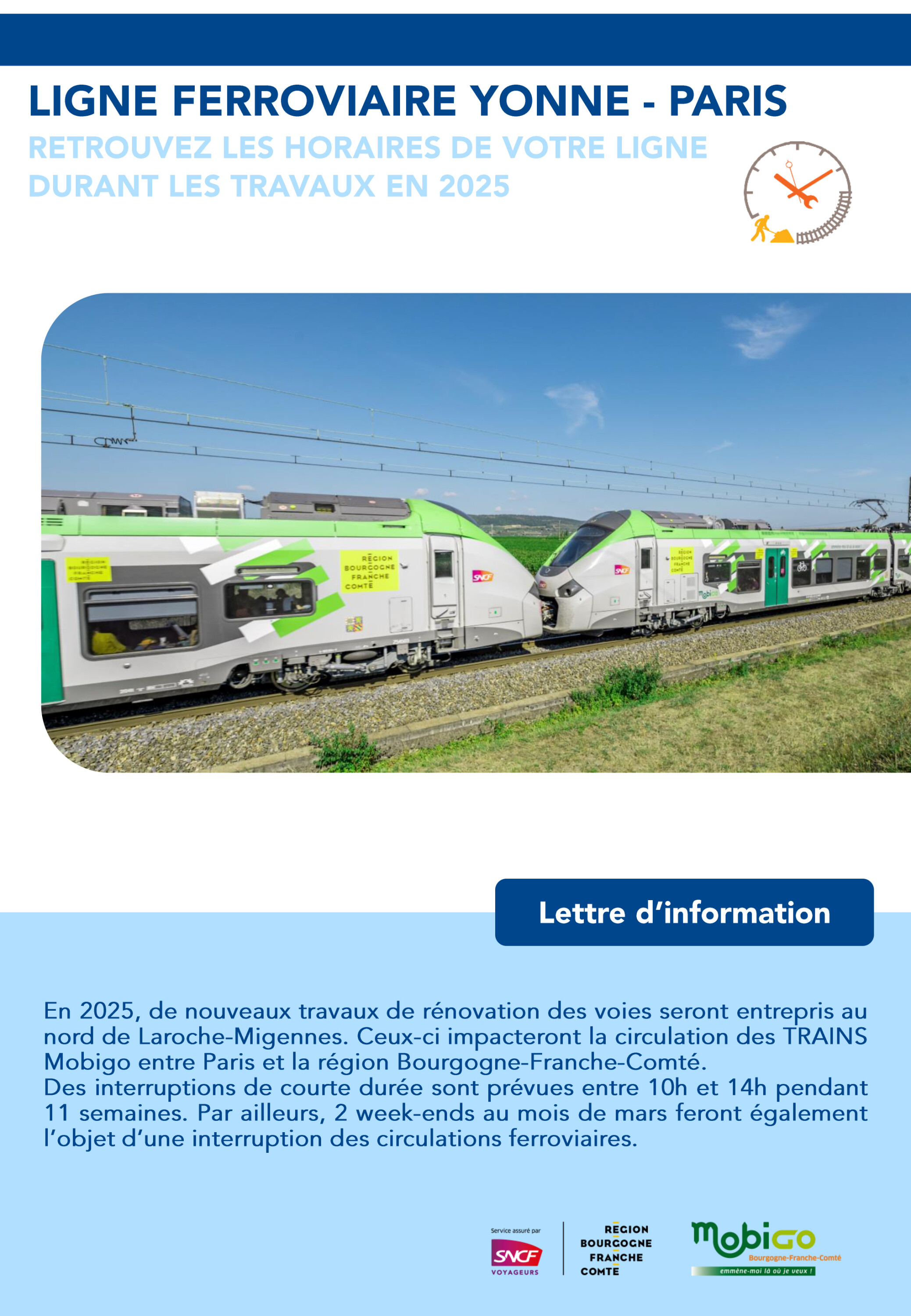 Dans le cadre des travaux opérés par le Gestionnaire d’Infrastructure, SNCF Voyageurs adapte le plan de transport entre l’Yonne et Paris.