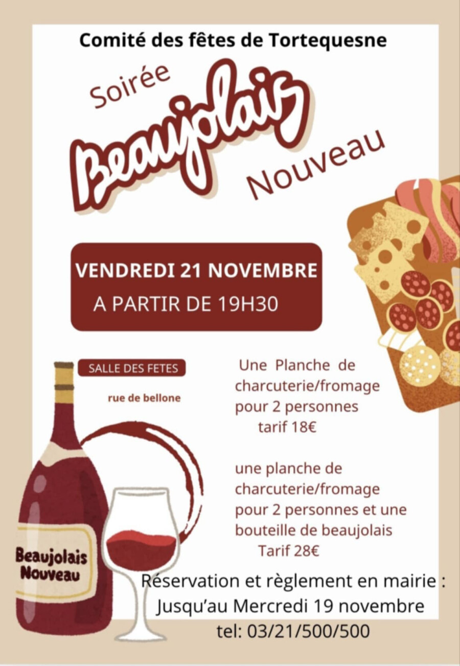 Le Comité des fêtes de Tortequesne organise sa traditionnelle soirée beaujolais nouveau le vendredi 21 novembre à partir de 19h30.