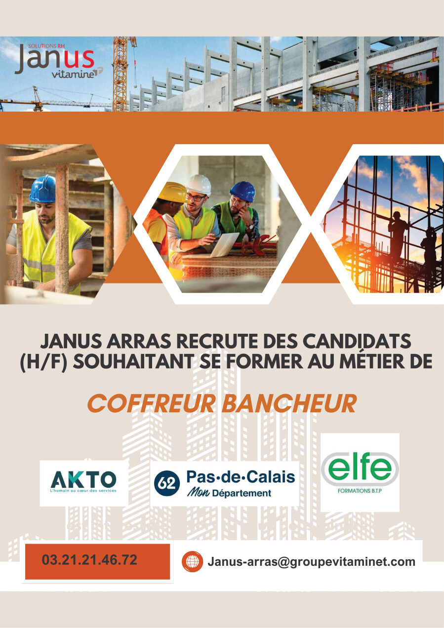 Nous avons le plaisir de vous informer qu’une opportunité de formation et d’emploi est proposée par Janus Arras, filiale inclusive du Groupe Vitamine T, acteur reconnu de l’insertion professionnelle.