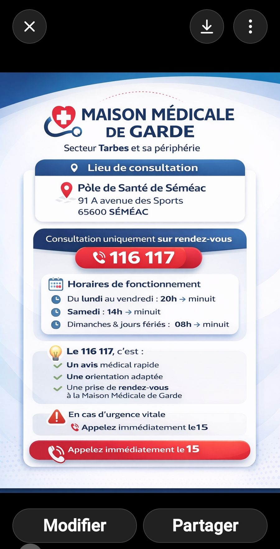 En cas d’urgence vitale, il est impératif de contacter immédiatement le 15.
