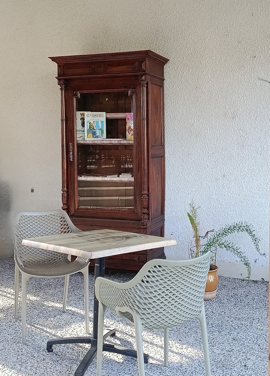 Une bibliothèque est désormais installée à La Pastourelle, sous la terrasse couverte.