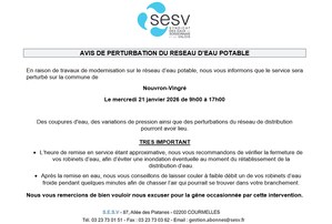 ⚠️ En raison de travaux sur le réseau, le SESV nous informe que le service sera perturbé sur notre commune :