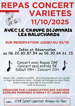 Repas organisé par l'Association des Anciens Sapeurs-Pompiers d'Arnay-le-Duc, suivi d'un concert par Les Baluchards.