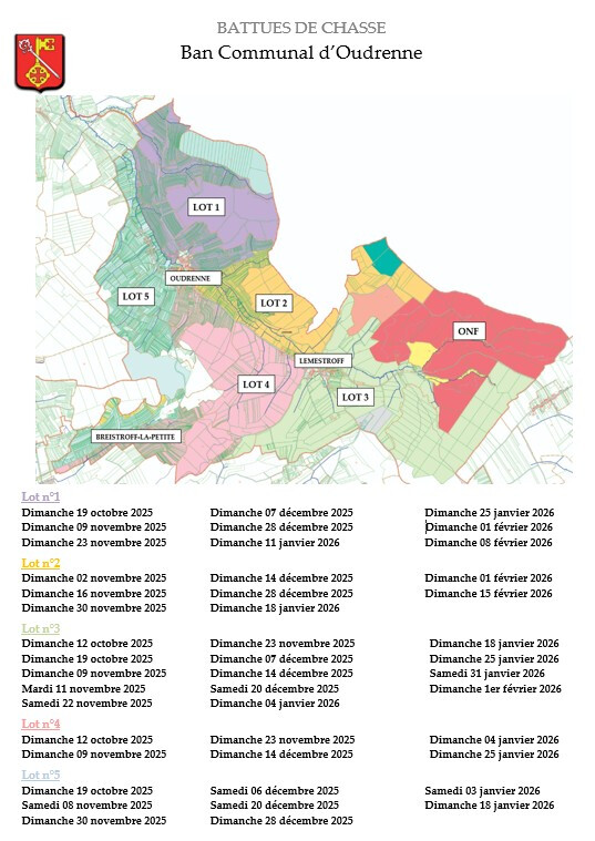 Conformément à la réglementation de la chasse en Moselle, l'adjudicataire du lot de chasse n°1 va procéder à partir de ce jour, jusqu'au 1er février 2026, au soir, à des tirs de nuit, sur la totalité de son lot de chasse, afin de réguler plus efficacement la prolifération des sangliers.