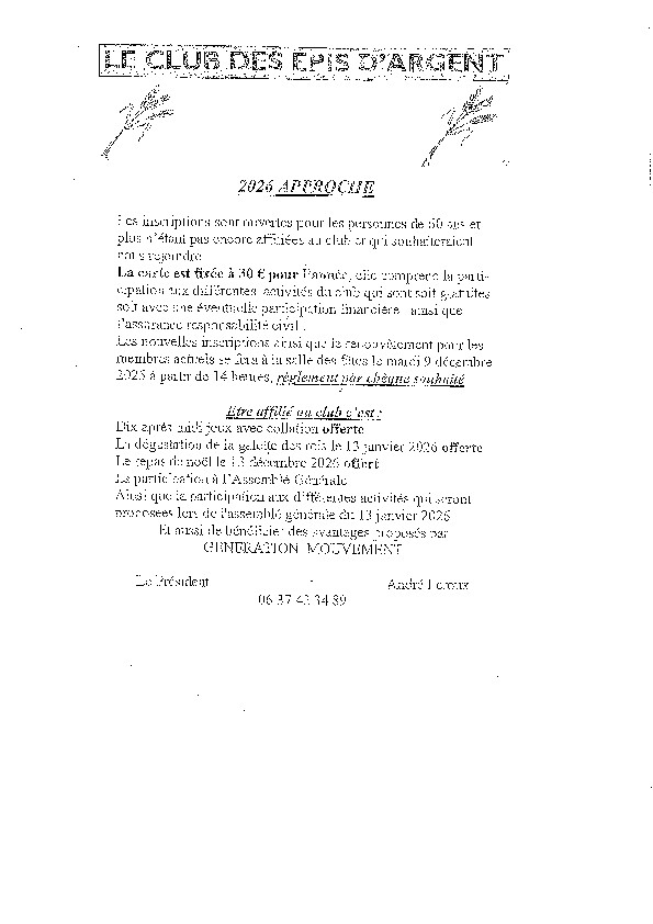 Les inscriptions sont ouvertes pour les personnes de plus de 60 ans !!
