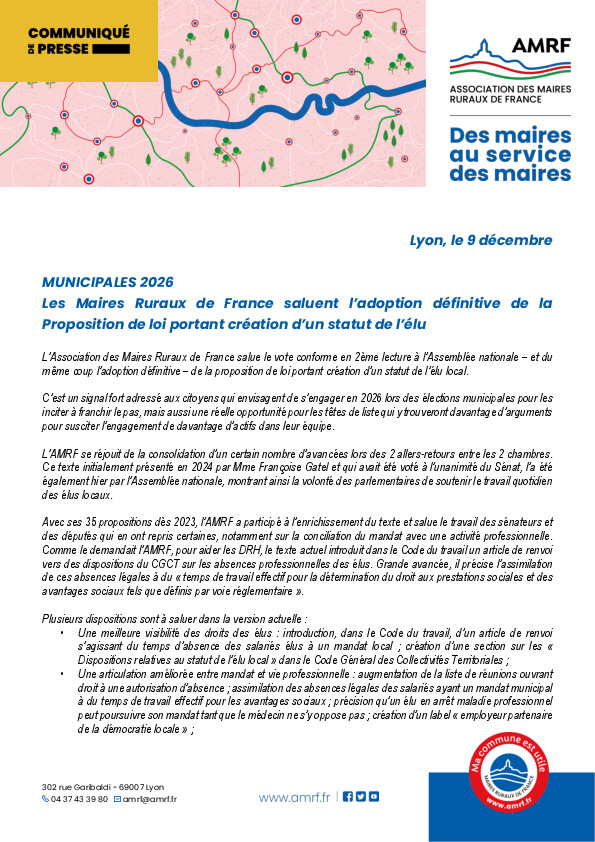 L’Association des maires ruraux de France se félicite du soutien apporté par l’État à son programme des « Élus ruraux relais de l’égalité » avec la signature ce mercredi 26 novembre 2025 d’une convention de partenariat entre l’AMRF et plusieurs ministères : le Ministère chargé de l’Égalité entre les femmes et les hommes et de la lutte contre les discriminations, le Ministère de l’Aménagement du territoire et de la Décentralisation, et le Ministère chargé de la Ruralité.