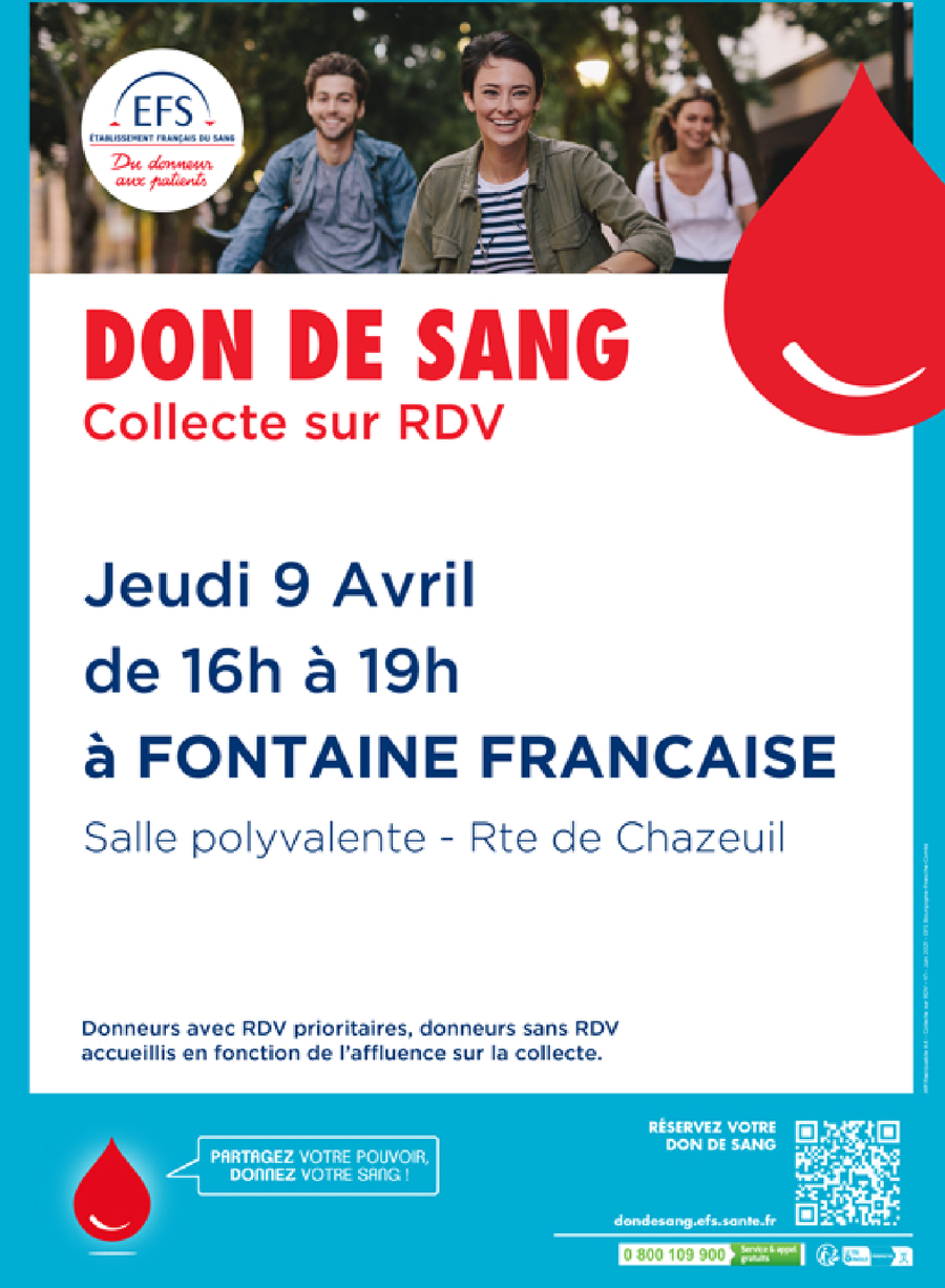 lien pour prendre rendez-vous : https://dondesang.efs.sante.fr/trouver-une-collecte/155779/sang/26-02-2026
