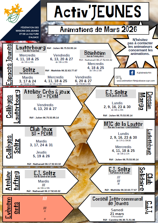 Vendredi : 08h30 – 12h00 | 13h30 – 16h00